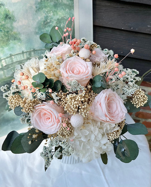 - Personnalisation d’un modèle existant : Nous adaptons un de nos modèles à vos préférences en termes de couleurs et de style. Vous pouvez consulter notre page "Bouquet de mariée" pour découvrir nos modèles et leurs prix.