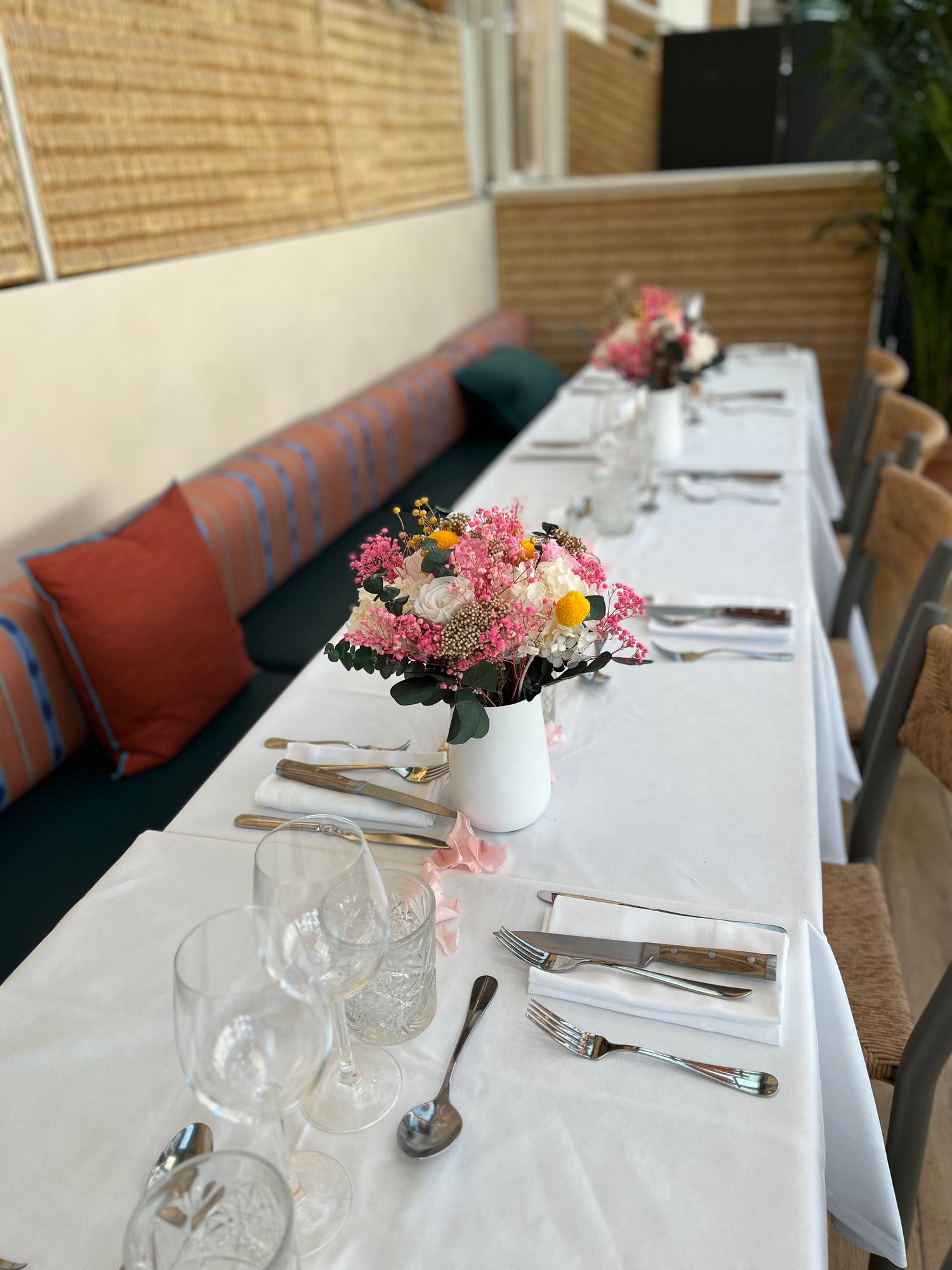 ( adapté pour une table allongée de moins d'un mètre ; 2 bouquets pour une table de 2 mètres, etc)