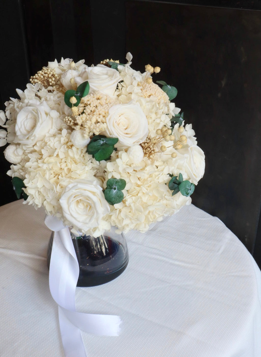 Veuillez noter que nous acceptons les commandes avec un délai minimum de 4 semaines avant la date de votre mariage, afin d'éviter toute rupture de stock de certaines fleurs stabilisées.