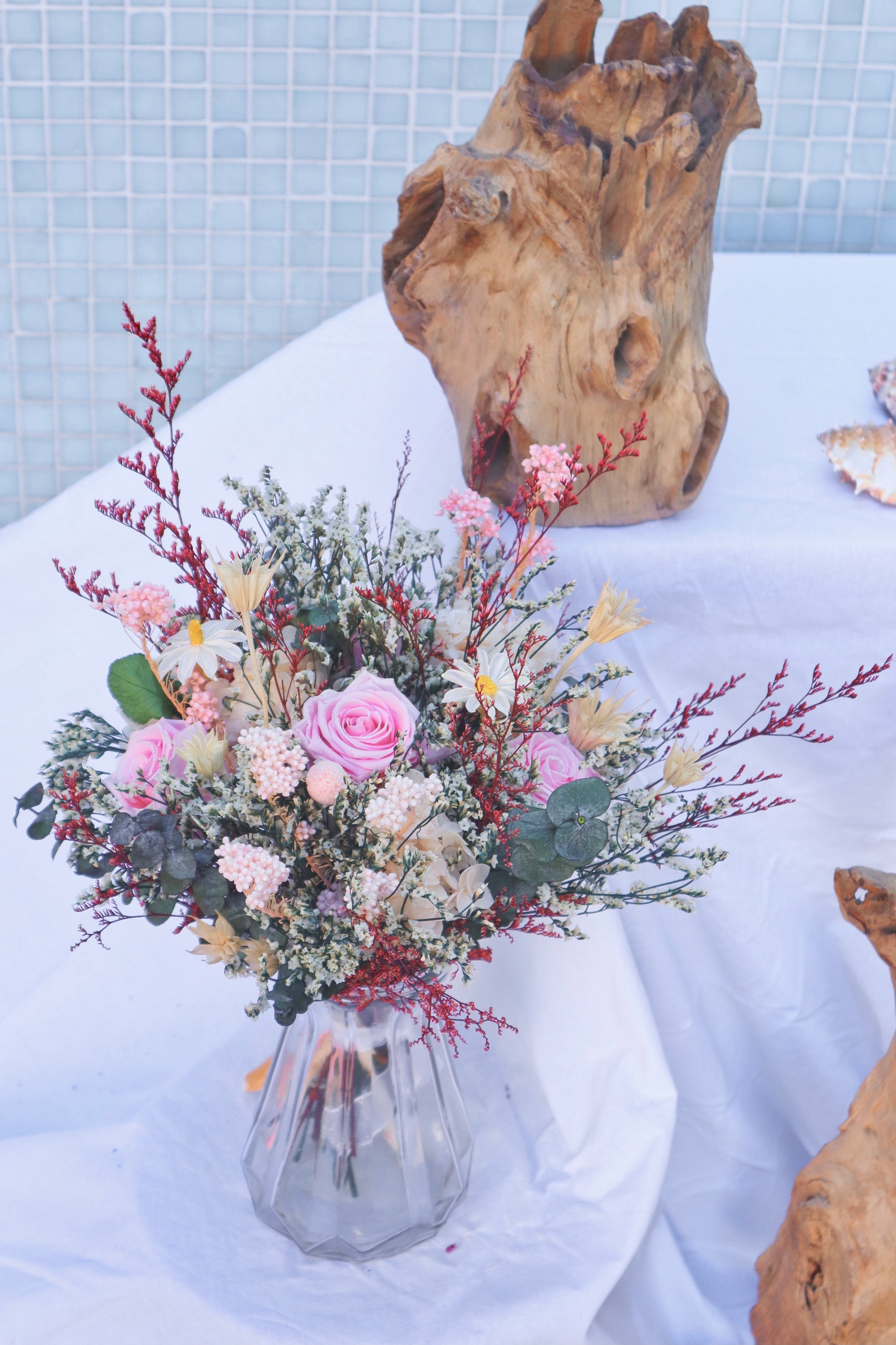(7/8 rose, 8 hydrangea S, static, rice flower, eucalyptus etc)