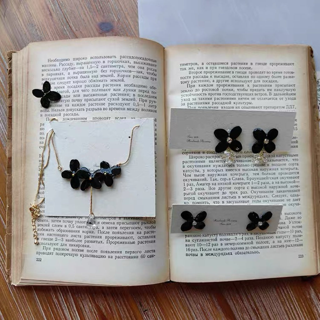 Ce collier floral noir, fait main et unique, s’accorde parfaitement avec les boucles d'oreilles de la même collection. Avec une largeur de 6 cm et trois pétales délicatement disposés, il capture l’essence du style vintage avec une élégance intemporelle. Son design raffiné et sa teinte noire profonde en font un choix idéal pour un mariage ou une occasion spéciale, ajoutant une touche de mystère et de grâce à votre tenue. Ce collier est parfait pour sublimer les amatrices de pièces uniques au charme floral élégant et distingué.