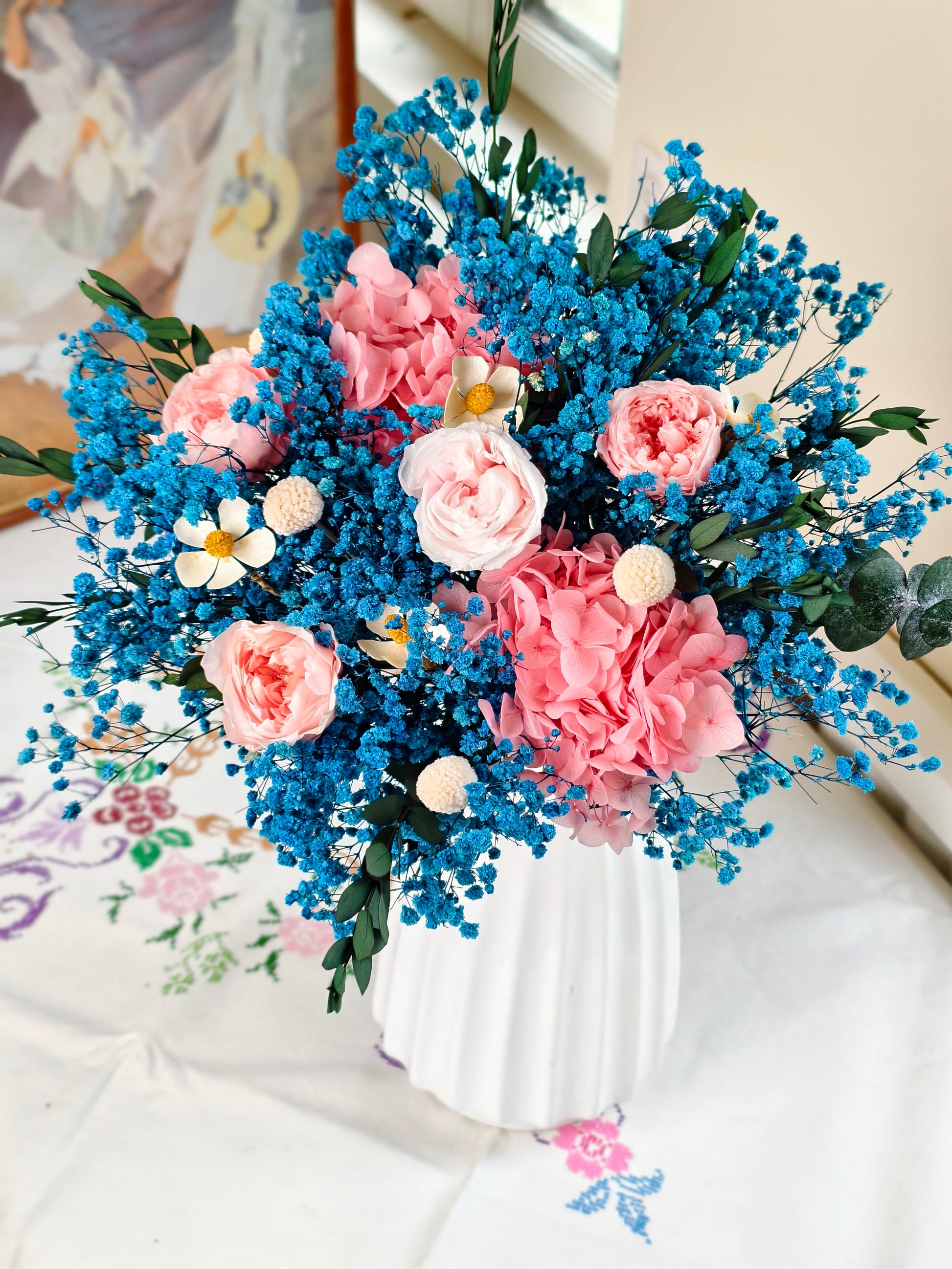 (7/8 rose , 4 hortensia, eucalyptus ,gypsohile etc)