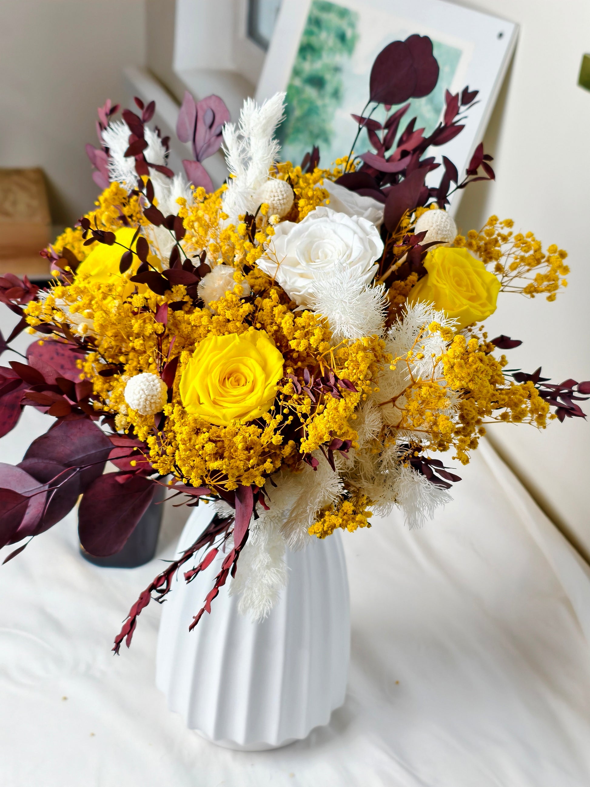 Hauteur du bouquet : 36 cm environ